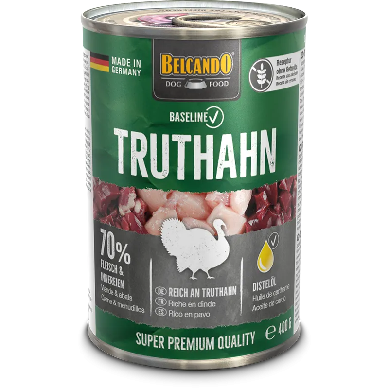 Composizione: carne, fegato, cuore e ventriglio di tacchino (26 %); brodo di carne (28,8 %); carne; fegato; stomaco; cuore; rene; polmone; gusci d’uovo*¹; minerali; olio di cardo (0,2 %) *¹essiccate