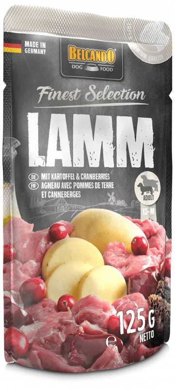 Perfetto per stomaci sensibili: questa combinazione senza cereali di agnello succoso e digeribile e mirtilli rossi è non solo deliziosa ma anche nutriente. I "super berries" sono ricchi di antiossidanti, mentre le patate offrono una fonte di energia duratura e un gusto eccellente. Un altro punto di forza della BELCANDO Finest Selection: un mantello morbido e lucente grazie all’aggiunta di olio di cartamo.